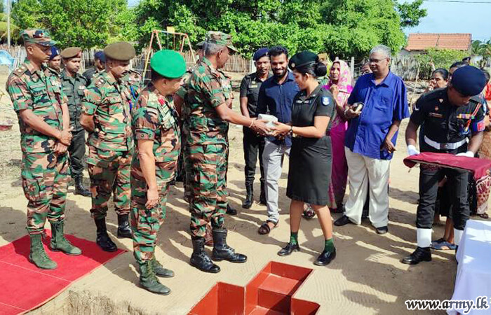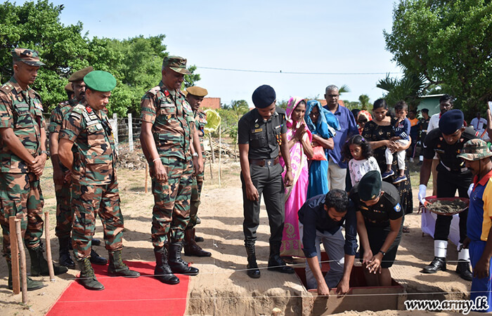 Showing the highest degree of comradeship and consideration for basic human needs, All Ranks in Mullaittivu-based 68 Infantry Division HQ through their own funds and resources are set to build a new house for one of their female workmates, Lance Corporal P.Keshiya of Mullivaikkal (East), Mullaittivu as her family does not have a proper house for dwelling.