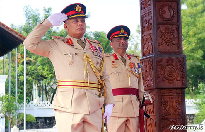 The Senior Officer was warmly welcomed by Colonel M.P.S.P Kulasekara WWV RWP RSP, Centre Commandant of the SLLI at the entrance and was accorded a colourful Guard Turnout before he was saluted in a ceremonial Guard of Honour by SLLI troops at the parade square.
