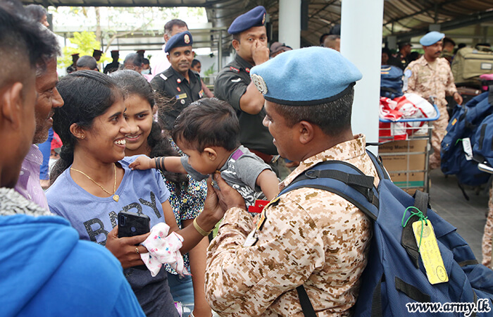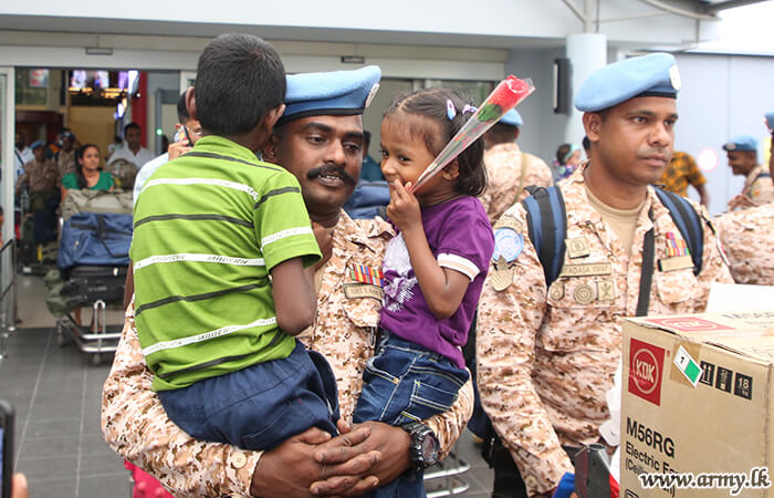The 14 Infantry Division Commander, Major General J.M.R.N.K Jayamanna RWP, Center Commandant of Gamunu Watch Brigadier W.B.J.K Wimalarathna RWP RSP with several Officers and relatives were at the Bandaranaike international airport to receive the first batch.