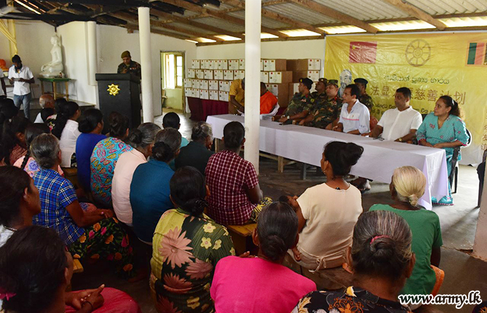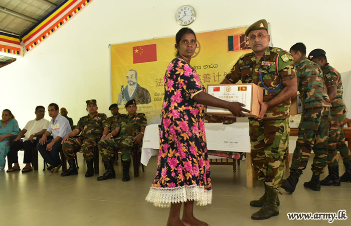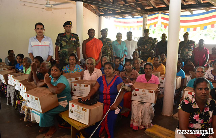 The 24 Infantry Division HQ with sponsorship provided by the Chinese Buddhist community took steps to distribute essential dry ration packs, each worth Rs. 5100/= among 250 families of low income groups, resident in Maha Oya, Bandaraduwa and Gonagolla areas in Ampara on Sunday (2 July) after inviting them to the Sri Gnanavijayaloka Viharaya, Sri Gothama Viharaya and Sri Wimalarama Viharaya (temples) in those areas.