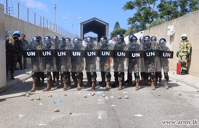 The day and night Exercise focused largely on mock control of crowds, rocket shelling attack, forcible entry of unauthorized vehicles into the camp, riot control, threat scenario, etc. 4 Armoured Personnel Carriers, 20 Riot Control personnel, Radio Operators, Medical representatives and Sniffer Dogs of the SLFPC contributed to the event at their level best.