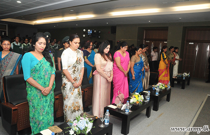 On arrival of the ASVU President at the location, she was welcomed by the ASVU Secretary offering a bouquet of flowers. After lighting the traditional oil lamp, the day's agenda got to a start with the singing of the Army Seva Vanitha song, followed by a two-minute silence in memory of fallen War Heroes. A short video film screened afterwards summed up the ASVU history of 39 years and its varied welfare services for the benefit of all Army personnel, the injured and family members of fallen War Heroes.