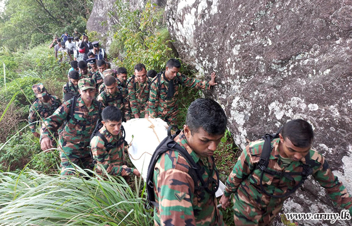 2 (V) Sri Lanka Sinha Regiment troops of the 11 Infantry Division of the Security Force HQ - Central responding to an SOS appeal of the Kandy Backpackers Hostel in Ampitiya, Kandy rushed to Alagalla hills and traced the dead body of a Danish tourist who had gone missing from the hotel since Wednesday (12).