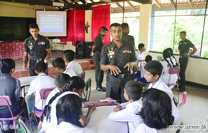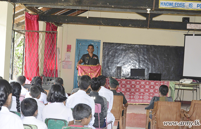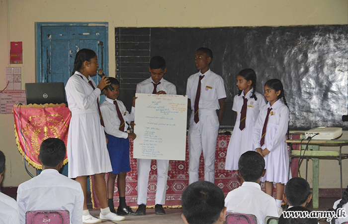Troops of the 8 Sri Lanka Sinha Regiment (8 SLSR) of the 611 Infantry Brigade and the 61 Infantry Division under the Security Force HQ - West, recently conducted a specially-designed ‘Leadership’ training programme for 50 students including prefects at Udamakadawara Kanishta Vidyalaya in Kegalle on Saturday (01 July) at the school premises.
