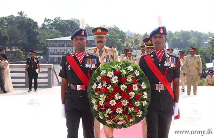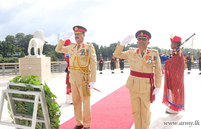 As the next item of the agenda, the new Colonel of the Regiment paid tribute to the memory of fallen SLLI War Heroes at the state-of-the art SLLI's monument by offering flowers.