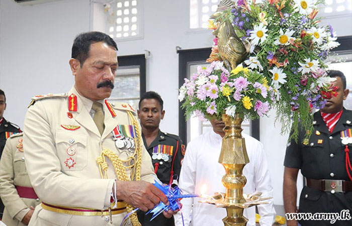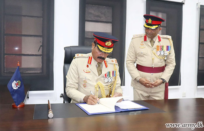 It followed the customary planting of a sapling in the Regimental HQ premises as a symbol of memory and several group photographs. Afterwards, Major General S.R.K Hettiarachchi RWP RSP VSV USP ndu psc in his new office lit traditional oil lamp and left his signature symbolically for an official document to signify the acceptance of the new responsibility.