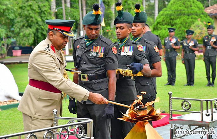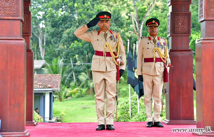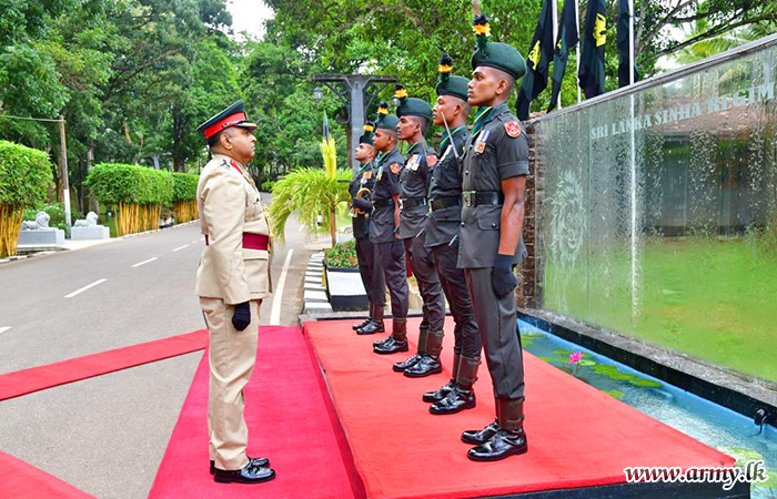 A Guard Turnout at the entrance plus a Guard of Honour at the parade ground saluted him before he made a floral tribute to the SLSR War Heroes’ monument in the Regimental Centre as a mark of respect.