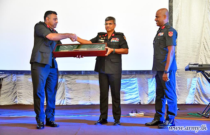 Major General G.R.R.P Jayawardena RWP RSP ndu, Colonel of the Regiment of SLSR and Quarter Master General on behalf of all in the SLSR presented a memento to the outgoing Senior Officer as a symbolic appreciation of his dedicated and committed services before his exit.