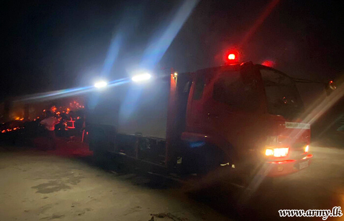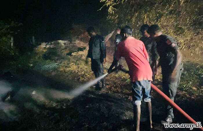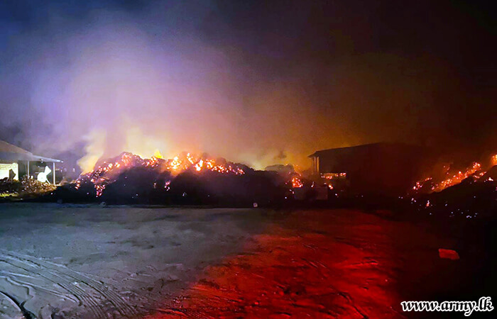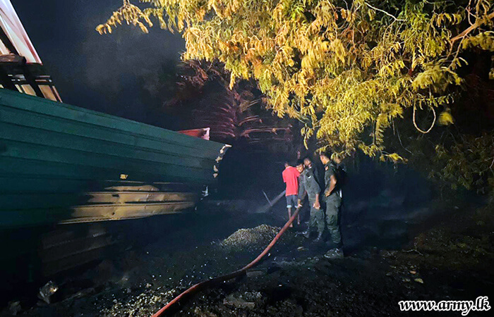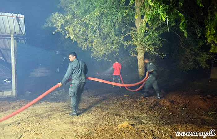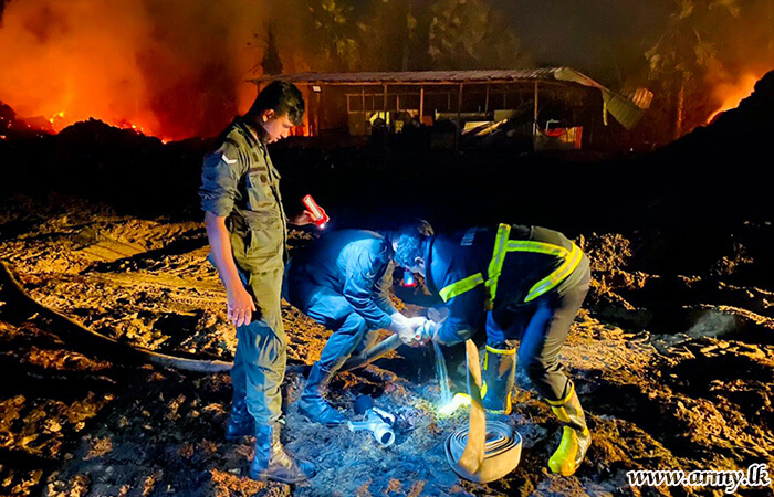 Troops of the 52 Infantry Division under the Security Force Headquarters-Jaffna on Saturday (22 July) evening swiftly acted and doused a fast-spreading fire at Coco Sheet Factory at Palai, Iththavil in the Jaffna peninsula.