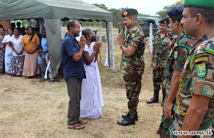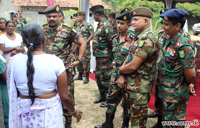 Organized collectively, the General Officer Commanding, 54 Infantry Division, Major General G.W.A Seneviratne USP psc took the initiative in this regard and took 25 dry ration packs to their doorsteps and handed them after the Grama Seva official recommended the most deserving beneficiaries.