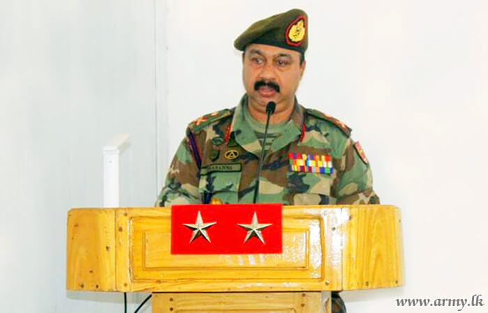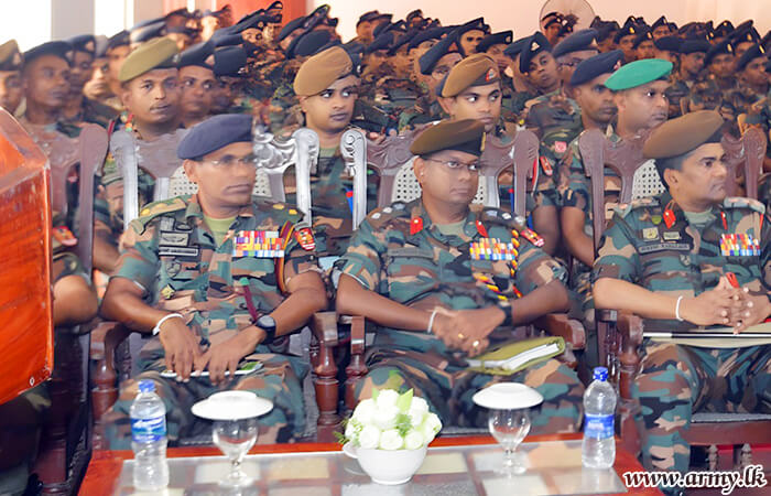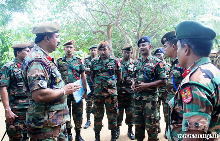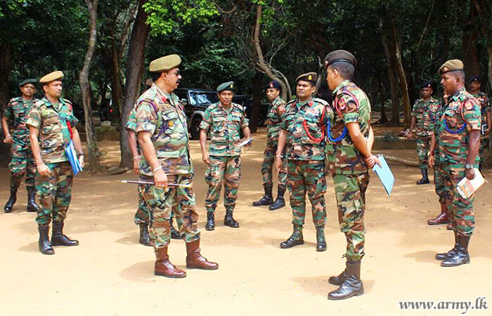 Afterwards, he reached 2 Sri Lanka National Guard camp at Jayapuram, where he addressed the troops of 552 Infantry Brigade and its under command Battalions before inspecting the camp premises and each and every Company detachment. He inquired about the well-being of troops and afterwards he visited 22 Vijayabahu Infantry Regiment camp at Vettakadu before the end of his itinerary.