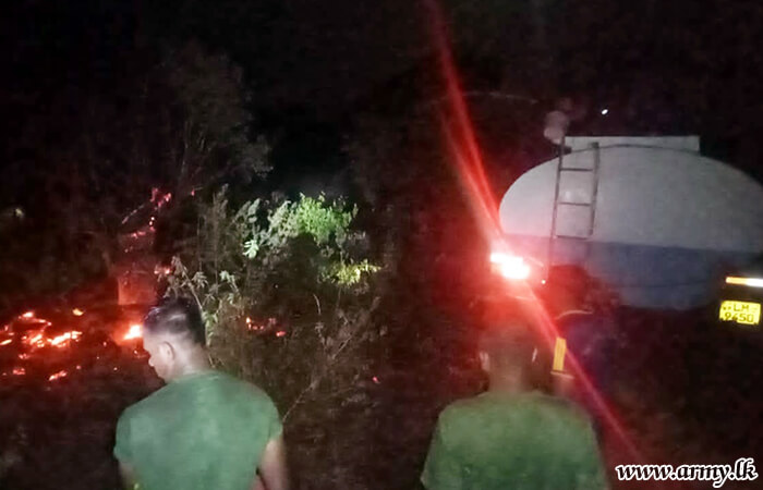 Troops of the 522 Infantry Brigade doused a fast spreading bush fire in the general area of Pachchapalai in Jaffna on Tuesday (Aug 01) due to dry weather patterns.