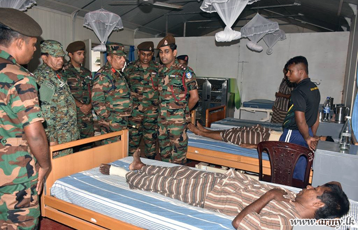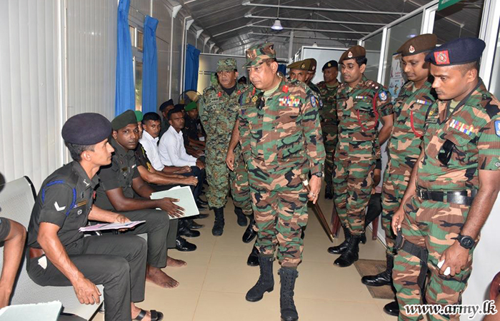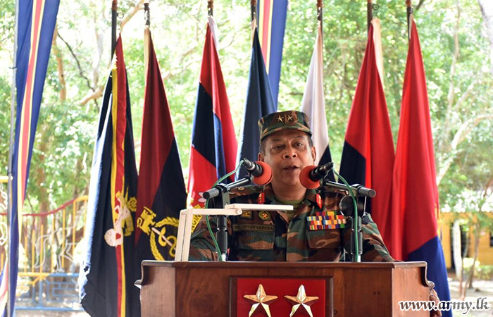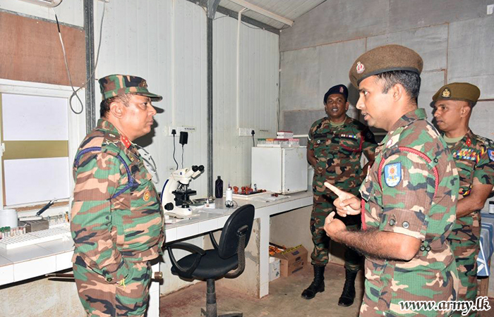 Afterwards, Major General M.K Jayawardena RSP VSV USP ndu visited the Army Base Hospital in Mullaittivu and 6 Sri Lanka Electrical and Mechanical Engineers Corps camp where he addressed all FMA - MLT troops and under command troops. Later on, he inspected the 7 Sri Lanka Army Ordnance Corps camp before he reached 6 Sri Lanka Army Service Corps camp for inspection.