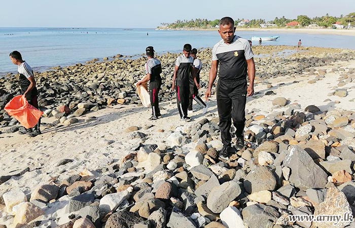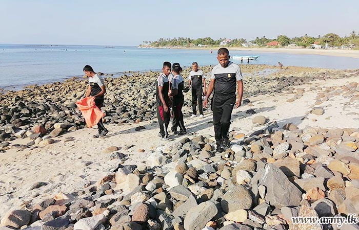 11 Vijayabahu Infantry Regiment (11 VIR) troops of the 521 Infantry Brigade under the 52 Infantry Division of the Security Force HQ - Jaffna (SFHQ-J), organized a beach cleaning project along the Akkarai coastal belt on Sunday (06 Aug) under the guidance of Major General S.R.K Hettiarachchi RWP RSP VSV USP psc ndu, Commander, SF-J and Major General Y.A.B.M Yahampath RWP RSP ndu psc, General Officer Commanding, 52 Infantry Division.