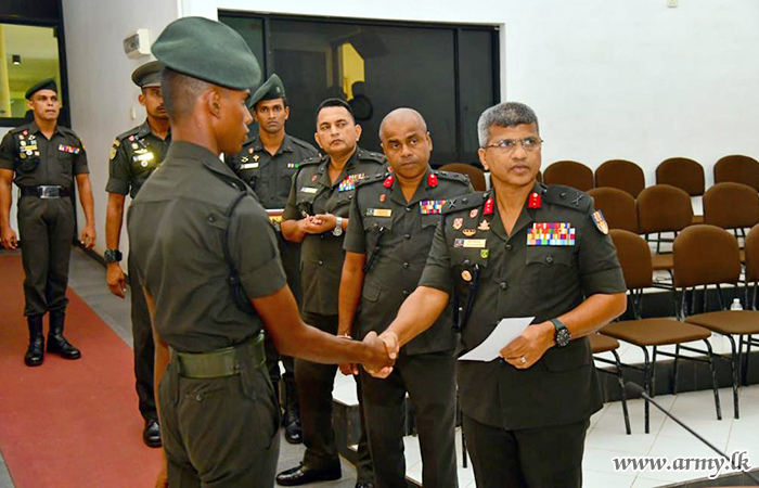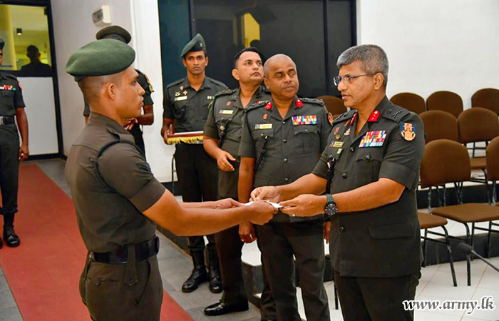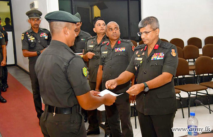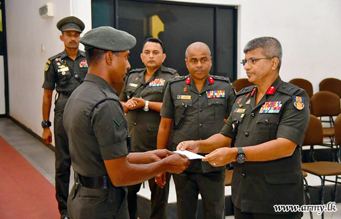 Accordingly, seven course attendees who showed excellent performances in recent ‘SNCO Leadership and Career Development Course’, ‘Drill Instructor Course’, three courses of ‘Method of Instruction’, ‘NCO Leadership and Career Development Course’ and ‘Physical Training Instructor Course’ received cash incentives on a proposal, made by Major General G.R.R.P Jayawardena RWP RSP ndu.