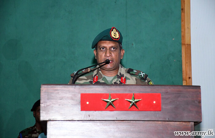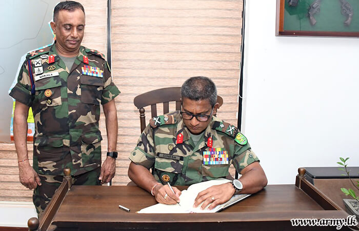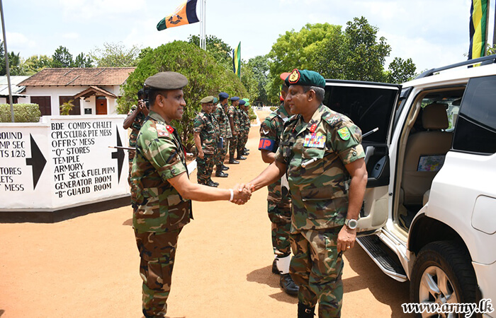 Major General H.G.P.M Kariyawasam RSP ndc psc IG, General Officer Commanding (GOC), 56 Infantry Division received him after he was greeted in a Guard Turnout at the entrance. Commencing the day's proceedings, he addressed the troops, planted a sapling in the premises before receiving a comprehensive briefing, done by the GOC on the role and tasks of the Division.