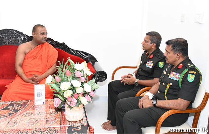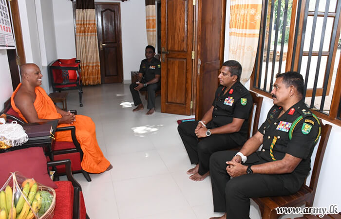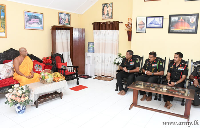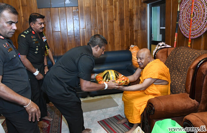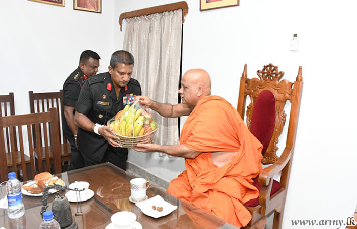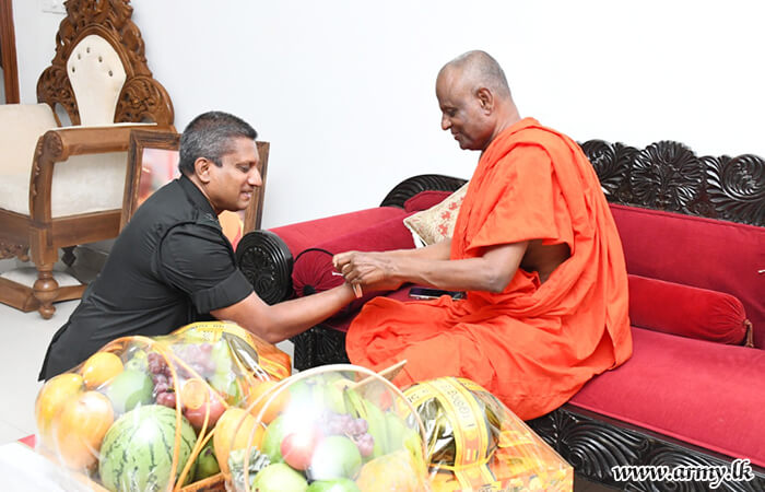 Afterwards, he met Ven. Pallegama Hemarathana Nayaka Thero, the chief incumbent for eight sacred places of worship (Atamasthanadhipathi), and Nuwarakalaviya Chief Sangha Nayaka at his monastery. Towards the end of the brief meet, he offered 'Pirikara' to Ven. Pallegama Hemarathana Nayaka Thero and received blessings during his audience at the incumbent’s monastery.