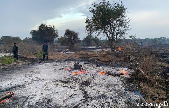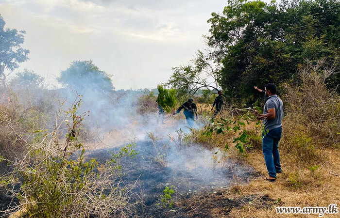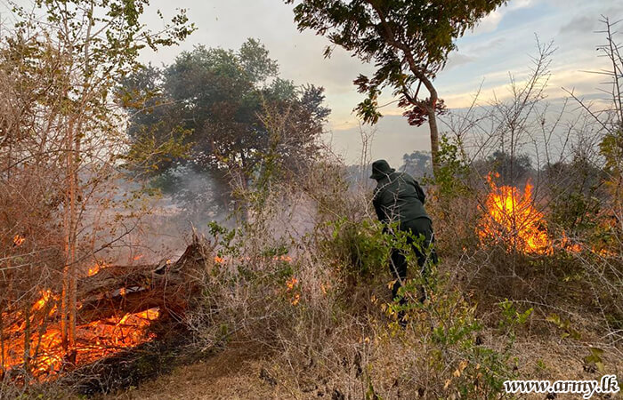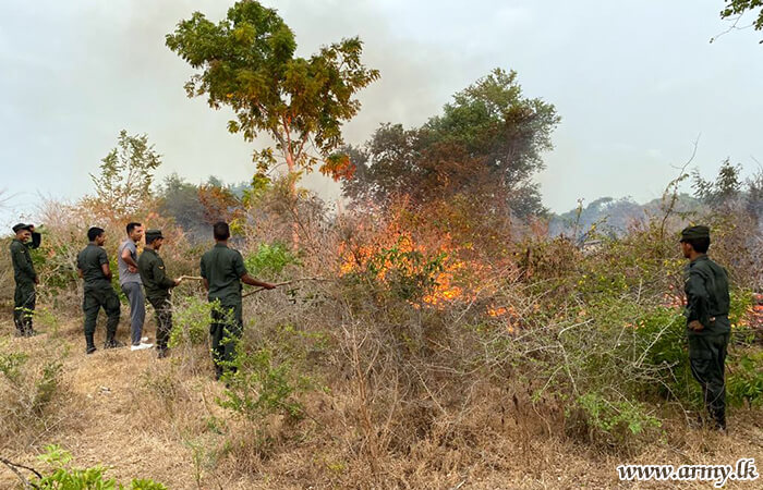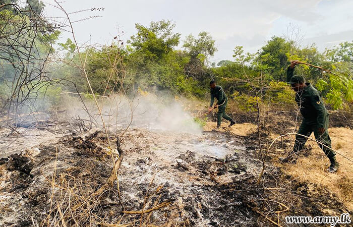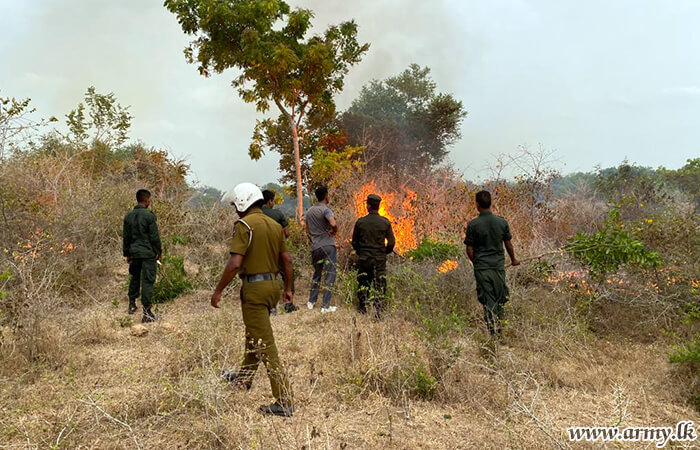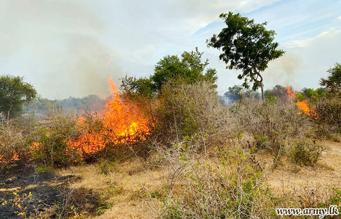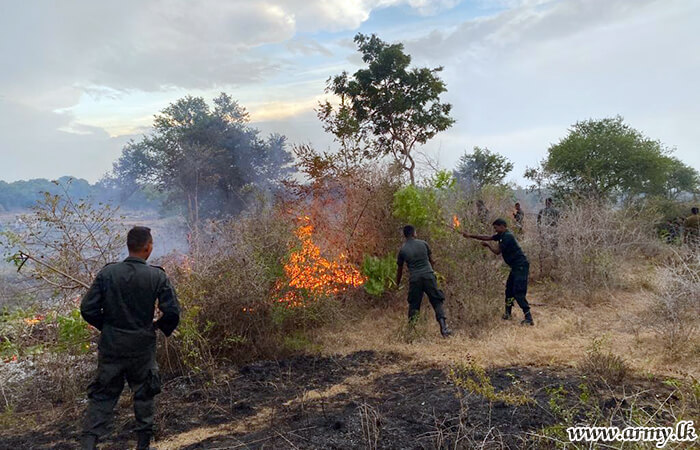 16 Gajaba Regiment (16 GR) troops of the 143 Infantry Brigade under the 14 Infantry Division of the Security Force HQ- West promptly acted to douse a bushfire that broke out at Thabbowa Reserve in Karuwalagaswewa area on Friday (11 Aug) evening.