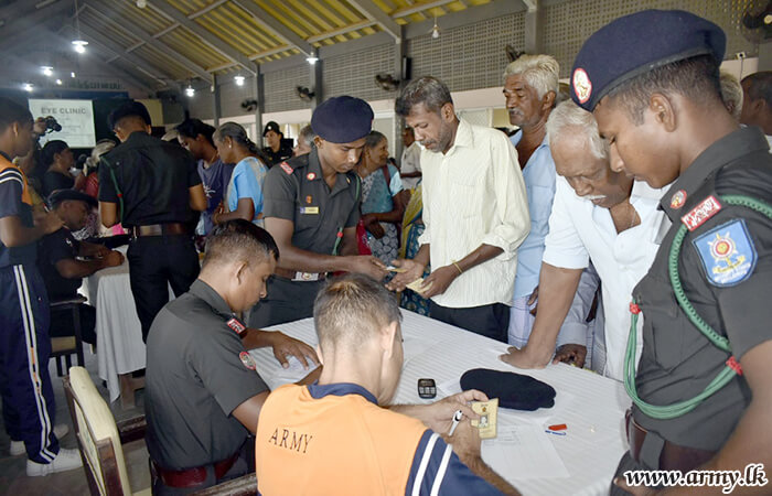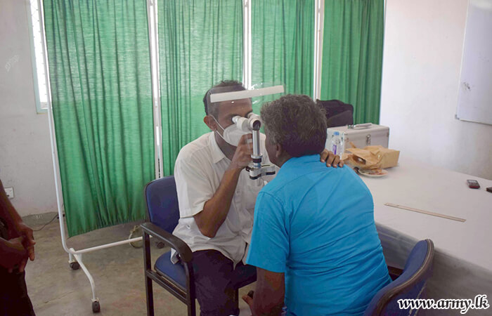 Nearly 464 civilians, affected with various vision defects and eye ailments in Mullaittivu area had the rare chance of getting medical consultations and treatment during a mobile eye clinic arrangement, organized by 68 Infantry Division troops of the Security Force Headquarters- Mullaittivu (SFHQ - MLT) at Udayarkattu Maha Vidyalaya on Sunday (13 August).