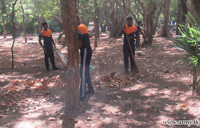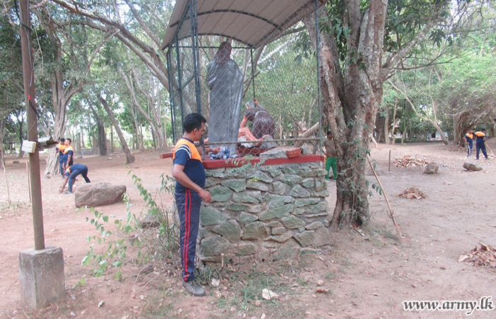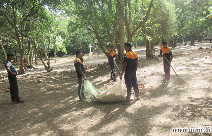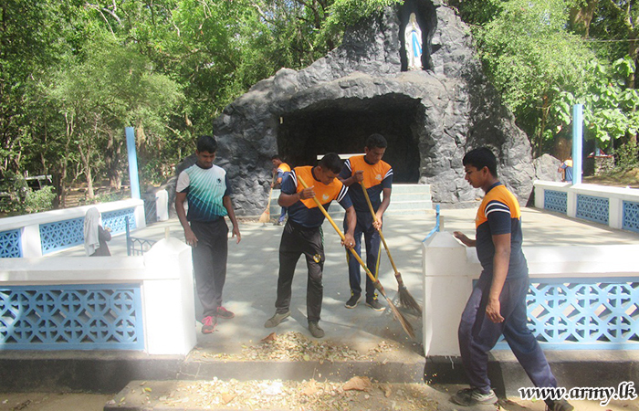 Troops in the Centre for Army Vocational Training (CAVT) at Kalaoya as part of their community-oriented projects cleaned up the Nirmala Devamatha Church premises in Kalaoya on Monday (07 August), ahead of its annual feast.