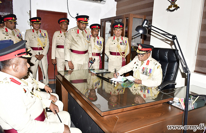The outgoing Colonel of the Regiment upon his arrival was warmly welcomed by Brigadier W.M.S.C.K Wanasinghe RSP USP, Brigadier General Staff of the Security Force Headquarters-Central and Brigadier A. M. A. Abeysinghe RWP RSP USP psc, MIR Centre Commandant, together with Regimental Council Members.