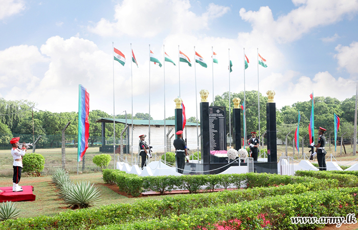 To coincide with India's Independence Day, a solemn ceremony at the Indian Peace Keeping Force (IPKF) Monument in Palaly, Jaffna remembered the sacrifices of Indian Peace Keeping Force (IPKF) troops who laid their lives in the fight against LTTE terrorism in Sri Lanka during 1987-1990.