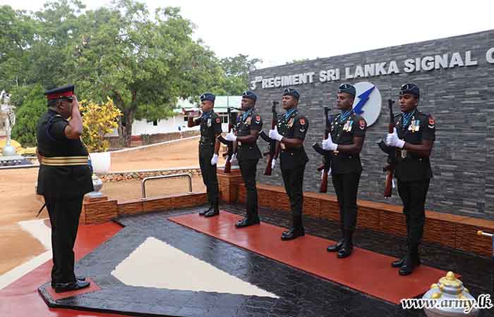 The Colonel Commandant was warmly welcomed by the Commanding Officer of the 3 Sri Lanka Signal Corps Lieutenant Colonel U.L.C.D Perera psc and a formal Guard Turnout, presented by 3 SLSC troops, saluted the Colonel Commandant upon his arrival at the 3 SLSC premises.