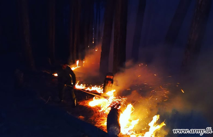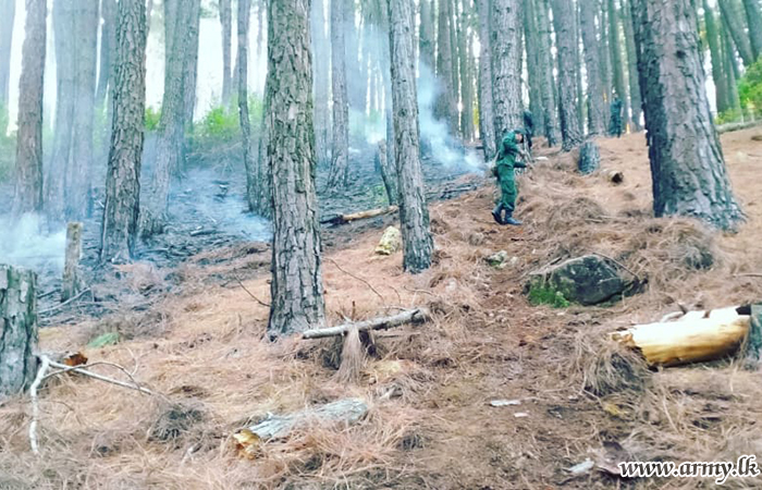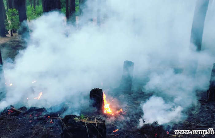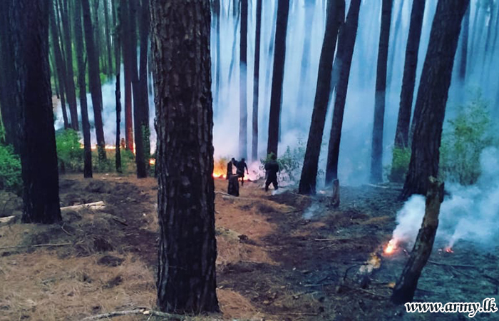 20 Army personnel belonging to the SFHQ - Central including officers rushed to the location and brought the fire under control in close coordination with the guidelines given by the Commander, SF-Cental.
