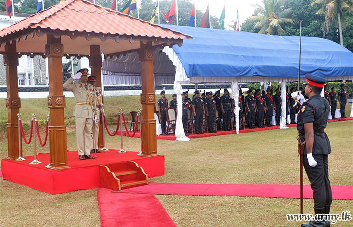 Troops of the Security Force HQ- West (SFHQ-West) on Tuesday (15 Aug) bade farewell to the outgoing Commander, SF-West, Major General D.M.K.D.B Pussella RWP RSP during a simple ceremony at the Security Force Headquarters - West (SFHQ-West) in Panagoda.