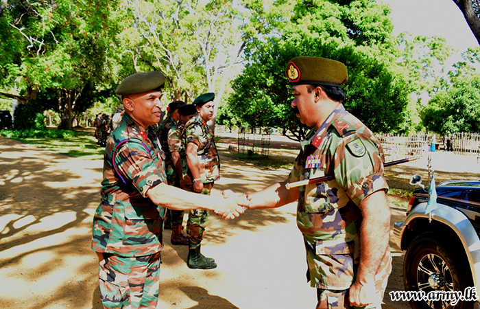 Brigadier K.V.N.P Premaratne RSP USP psc, General Officer Commanding (GOC) of 23 Infantry Division warmly welcomed the new Commander, Security Forces - East, after he was saluted in a colourful Guard Turnout at the entrance, presented by 9 Sri Lanka Artillery troops.