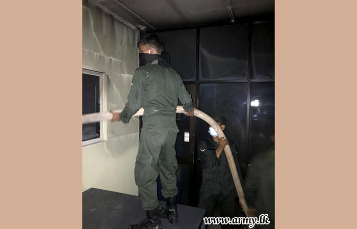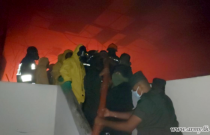 On the directions of the Commander of the Army, more than 200 troops jumped into action and provided their support, including Officers from the 1 Sri Lanka Light Infantry, 5 Field Engineer Regiment, 14 CBRN Regiment and 18 Sri Lanka National Guard. Army troops in cooperation with Kotte and Horana fire brigades assisted to douse the raging fire.