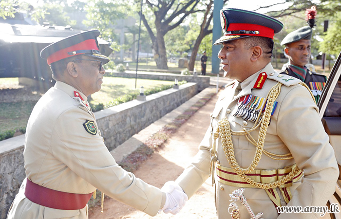 The incoming Colonel of the Regiment was warmly welcomed by Brigadier A.M.A Abeysinghe RWP RSP USP psc, Centre Commandant-MIR after he was greeted in a Guard Turnout. Subsequently, the new Colonel of the Regiment offered a floral tribute to MIR fallen war heroes' monument in the premises before a formal Guard of Honour saluted him.