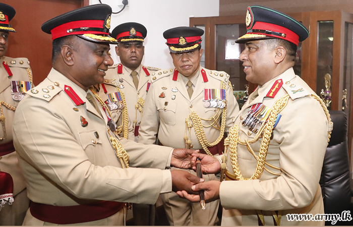 Major General M.G.W.W.W.M.C.B Wickramasinghe RWP RSP ndu psc warmed his new office as Colonel of the Regiment after lighting the traditional oil lamp before he left his signature symbolically for an official document to signify the acceptance of the new responsibility.