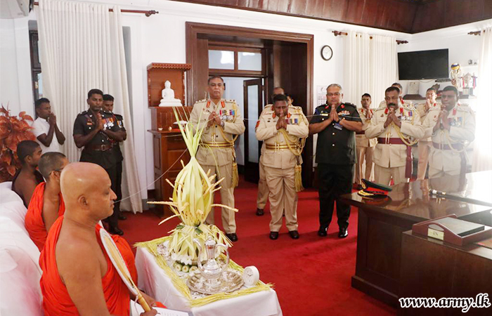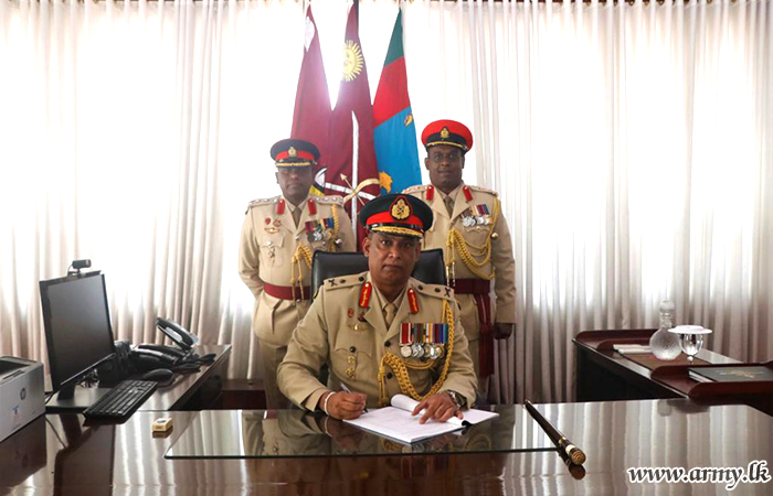 After the formal military honours, Major General U. D. Wijesekera RWP RSP USP rcds psc took over duties amidst religious observances and placed his signature symbolically in an official document to signify the acceptance of his new office. Thereafter, the new West Commander planted a sapling in front of the main office complex to mark the assumption of duties and posed for a group photograph.