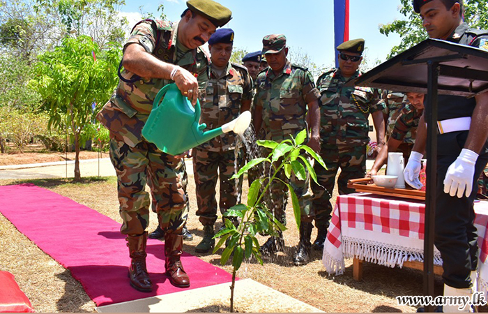 Firstly, the Commander, Security Forces - East visited the ROSC at Punani and the East Commander was warmly welcomed by Colonel B.A.S.S.D Bulathgama, the Commandant of the ROSC. Further, he received a briefing about the ROSC. Then, the Commander planted a mango sapling and posed for a group photograph with the staff at the ROSC. After a while, he looked around the camp premises of the complex with the Commandant. Before his departure from the complex, the Commander left a couple of thoughts and compliments in the ROSC visitors’ book.