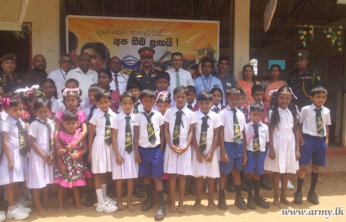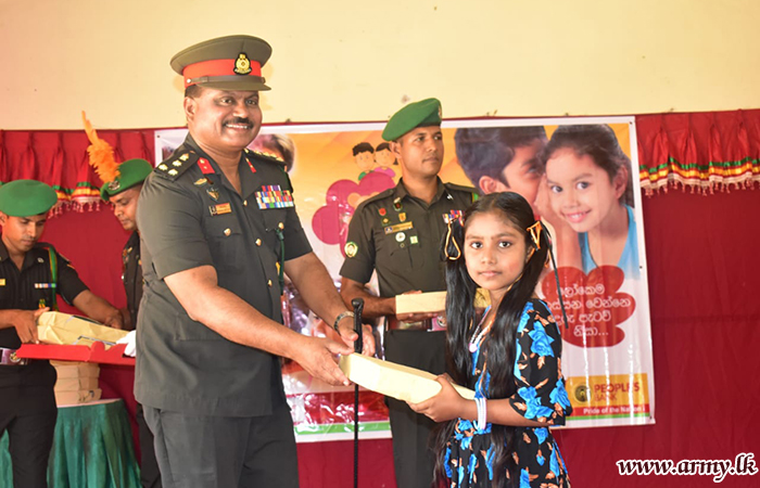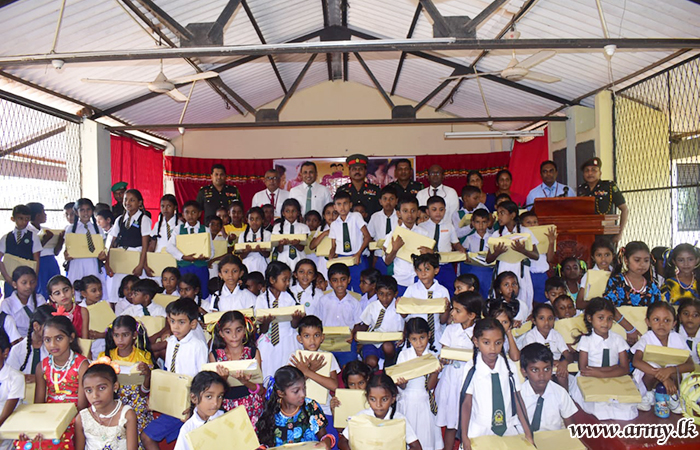 The 211 Infantry Brigade of the 21 Infantry Division under command to the Security Force Headquarters-Wanni with the patronage of the People's Bank Buddhist Association distributed a stock of school accessories among 132 needy school students learning at Padaviya Kudarathmale Vidyalaya, Welioya Janakapura Vidyalaya and Halabawewa Vidyalaya on 15 August at their respective schools premises.