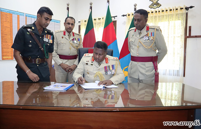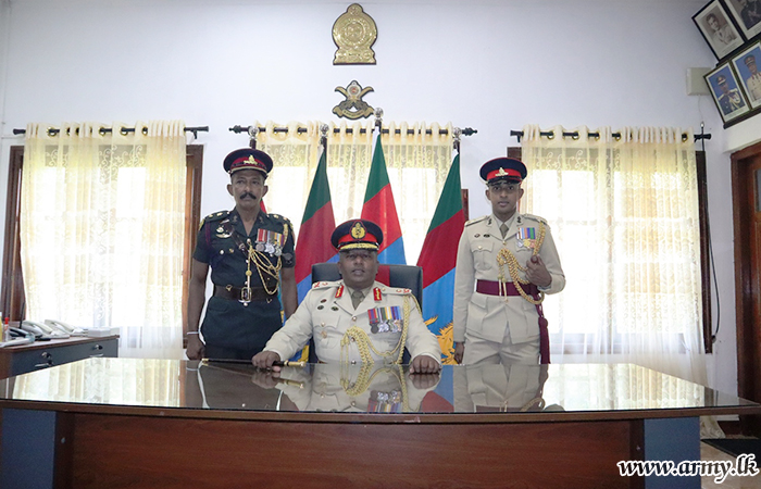 In his new office, the new General Officer Commanding was invited to leave his signature in an official document to mark the assumption of his duties amidst 'Seth Pirith' chanting.