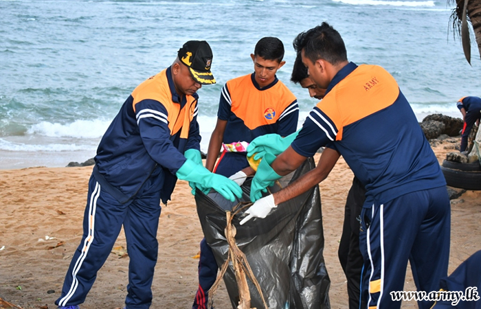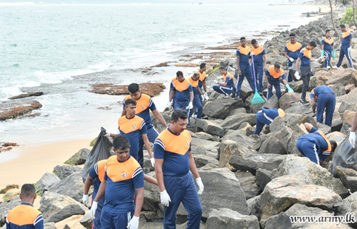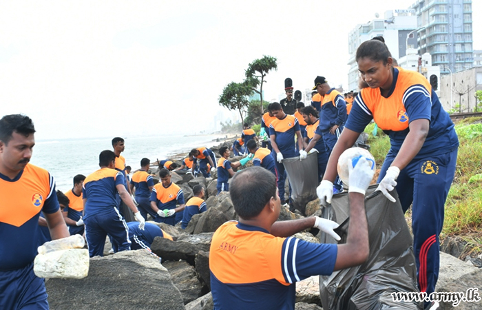 Environment-concerned troops of the Special Investigation Unit of the Sri Lanka Corps of Military Police (SLCMP) on Friday (18 August 2023) carried out a beach cleaning programme along polluted Wellawatte beach patch with the participation of more than 100 troops.