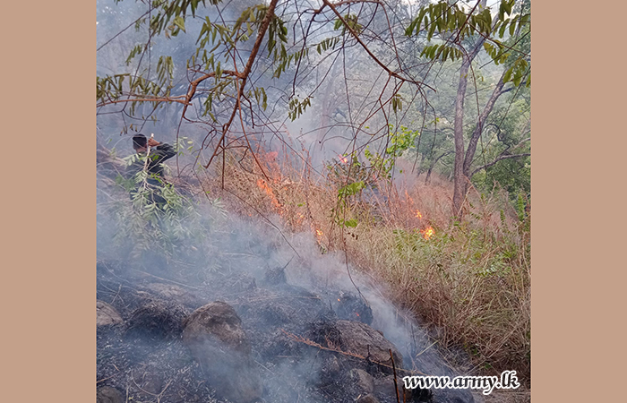 Commandos of the Army at Commando Regiment Training School (CRTS) in Kudaoya promptly responded and doused a major forest fire that broke out in the Kotigambokka, Thiththamulakanda forest reserves in the general areas of Wellawaya on 21 August 2023 at about 5.50 pm.