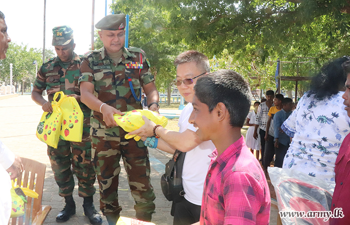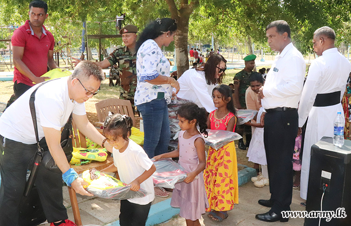 542 Infantry Brigade of 54 Infantry Division under the Security Force HQ - Wanni, together with the members of ‘Willing Hearts’ Foundation in Singapore and ‘Maha Karuna’ Society in Vavuniya distributed a large stock of dry ration packs and school accessories among 150 deserving students in Madu Divisional Secretary area in Mannar District on Tuesday (22 Aug) at Madu Church.