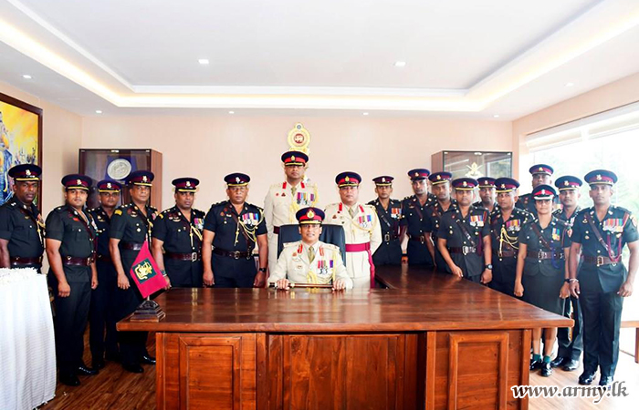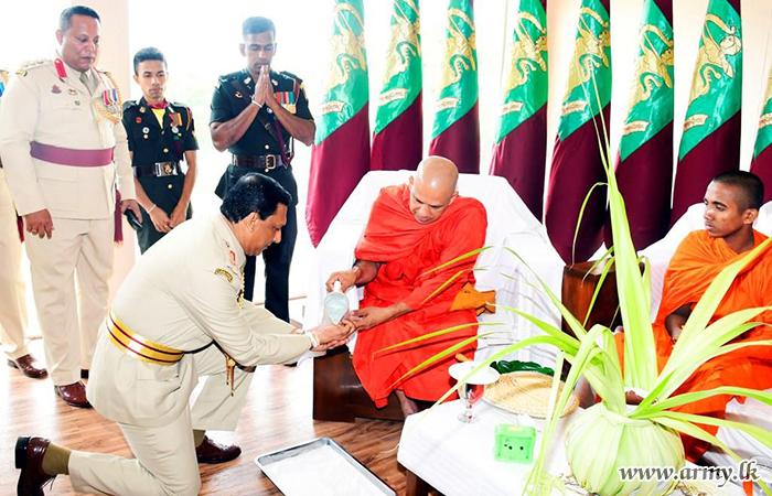 In the new office, Major General D.M.K.D.B Pussella RWP RSP left his signature symbolically for an official document to signify the acceptance of the new responsibility amidst chanting of Seth Pirith at his office.