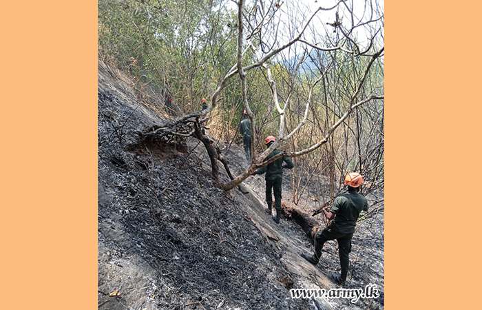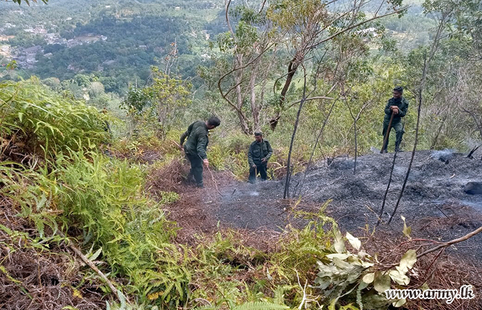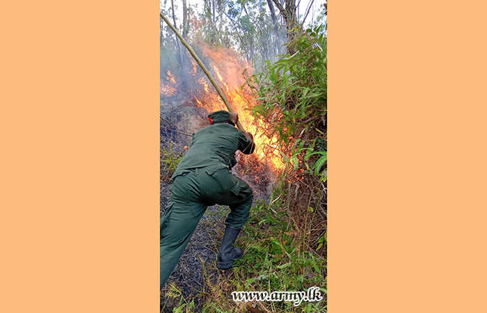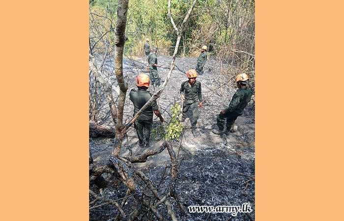 60 Army personnel of the 8 Sri Lanka Sinha Regiment (SLSR) serving under the 611 Infantry Brigade of the 61 Infantry Division swiftly acted and brought a major bushfire that erupted in the general forest reserve area in Koskele, Opatha in Warakapola on Tuesday (22 August). Troops with the support of Policemen, supported by Disaster Management Centre officials brought the raging bushfire under control with much efforts. In another development of the same nature in the general area of Galdola, prompting the Divisional Secretariat, Kalthota and the Disaster Management Center, Ratnapura to seek Army assistance to quell the fast spreading fire in the forest area on Wednesday (23 August) morning hours. Responding promptly, 60 personnel from the 8 Battalion Gemunu Watch, including four officers of the 611 Infantry Brigade of the 61 Infantry Division, swiftly moved out and joined forces to combat the fire. The timely contribution of the Army troops in consultation with relevant authorities enabled the containment of those bushfires that broke out due to prevailing dry spells. The General Officer Commanding, 61 Infantry Division, 611 Infantry Brigade Commander and Commanding Officers of those battalions closely coordinated with the troops and gave necessary guidelines.