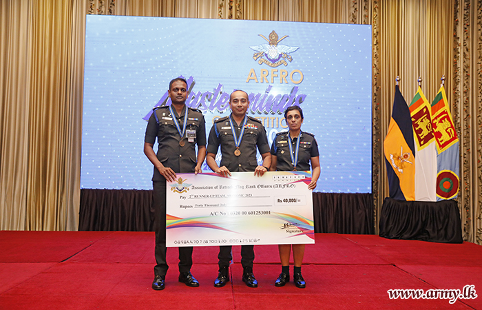 At the end of the competition, General Kamal Gunaratne (Rtd) WWV RWP RSP USP ndc psc MPhil, together with Air Chief Marshal Gagan Bulathsinghala RWP, RSP, VSV, USP, M Phil (Def & Strat Stu), MSc (Def Stu) in Mgt, MIM (SL), ndc, psc, President, ARFRO awarded certificates to the winners in separate teams.