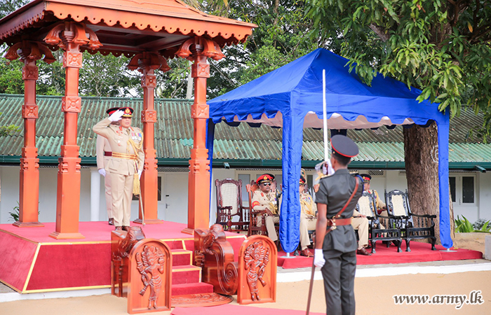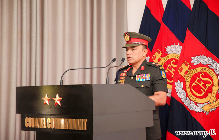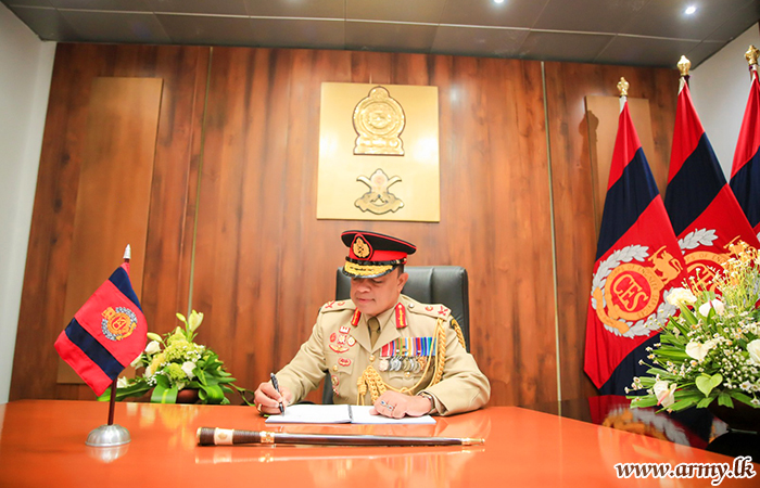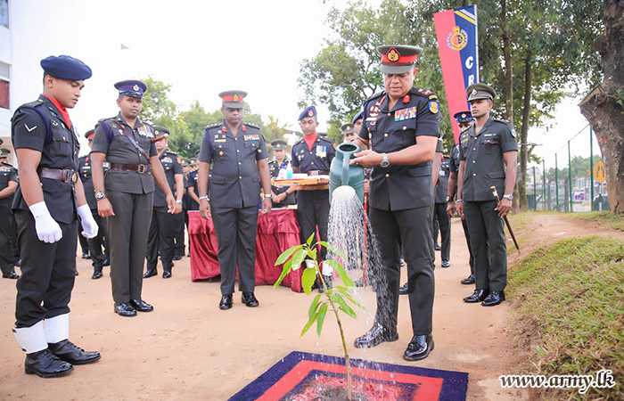 Minutes later, amidst chanting of 'Seth Pirith', the newly-appointed Colonel Commandant of the Corps of Engineer Services placed his signature for an official document, symbolizing the formal acceptance of his new office. Subsequently, a group photograph at the entrance to the Regimental Centre added memories. He also planted a Mango sapling in the compound to mark the occasion.
