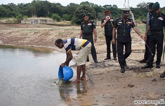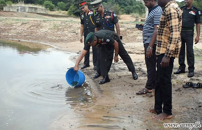 Brigadier N.D.P Gunathunga, Commander, 681 Infantry Brigade and Colonel J.M.W.K Jayalath RWP RSP USP, Colonel General Staff of the 68 Infantry Division were present at the time of the release of those fish. Several aquaculture officials and members of village fishers' committee were also associated with the simple event.