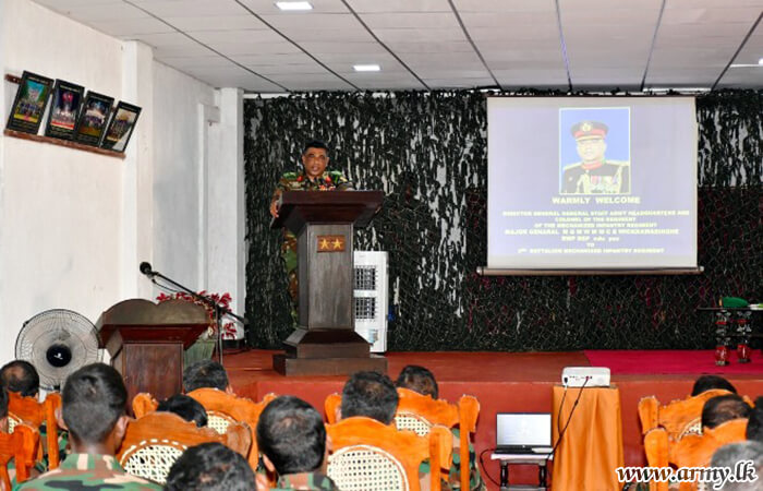 The recently-appointed new Colonel of the Regiment of the Mechanized Infantry Regiment (MIR) and Director General General Staff Major General M.G.W.W.W.M.C.B Wickramasinghe RWP RSP ndu psc made his first official visits to the Mechanized Brigade, Mechanized Training School, 1 MIR, 2 MIR, 3 MIR and 5 (V) MIR camps during 24 - 27 August in order to receive updates on the functional aspects of those establishments.