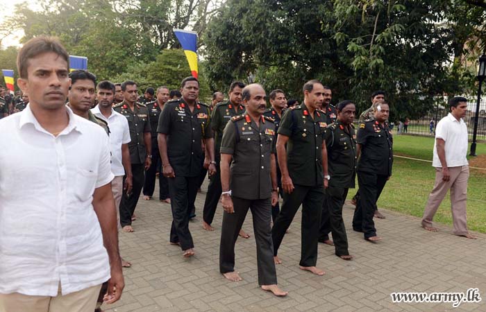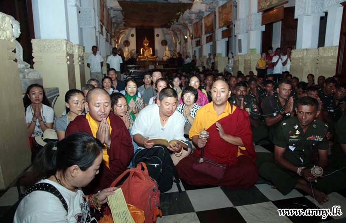 Gilanpasa Pooja at the Sri Dalada Maligawa on Wednesday (28) evening was patronized by the troops of the 11 Division Headquarters at Pallekele commanded by Major General D.S.N.K Senadheera. General Officer Commanding, 11 Division. Hundreds of officers and other rankers took part in the ceremonies.