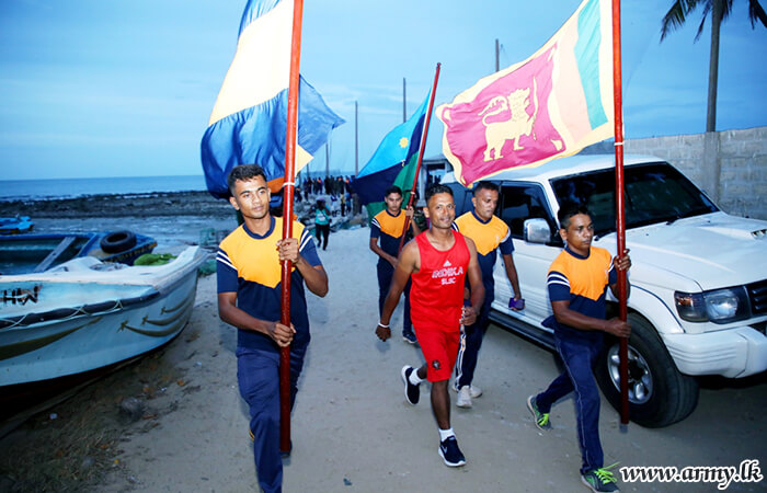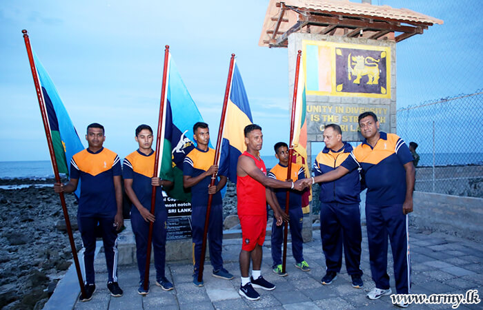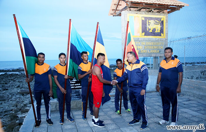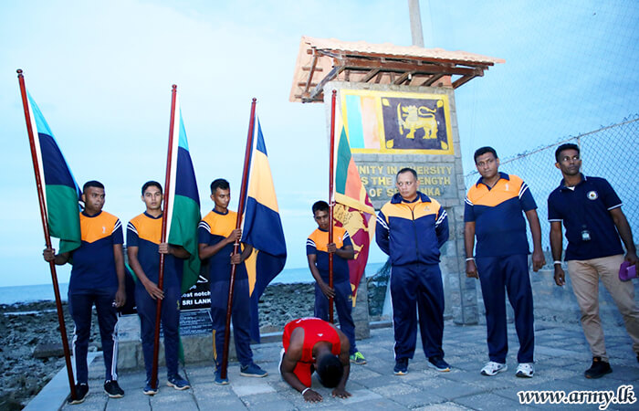 Major General Y.A.B.M Yahampath RWP RSP ndu psc, General Officer Commanding, 52 Infantry Division, Lieutenant Colonel U.L.D.C Perera, Commanding Officer of 3 SLSC with Representatives of Guinness World Records Committee were there in Point Pedro to flag off the expedition amid cheers and applause. A brief religious programme blessed the expedition.