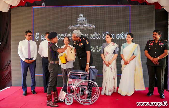 The Sri Lanka Artillery Seva Vanitha Branch (SLA - SVB) with the objective providing incentives, aids and relief packs to children of SLA Army families with special needs recently conducted a programme to distribute five wheelchairs and packs of essentials and snacks to them at Panagoda SLA Regimental HQ, following arrangements, made by Mrs Chama Wanasinghe, Chairperson, SLA - SVB.
