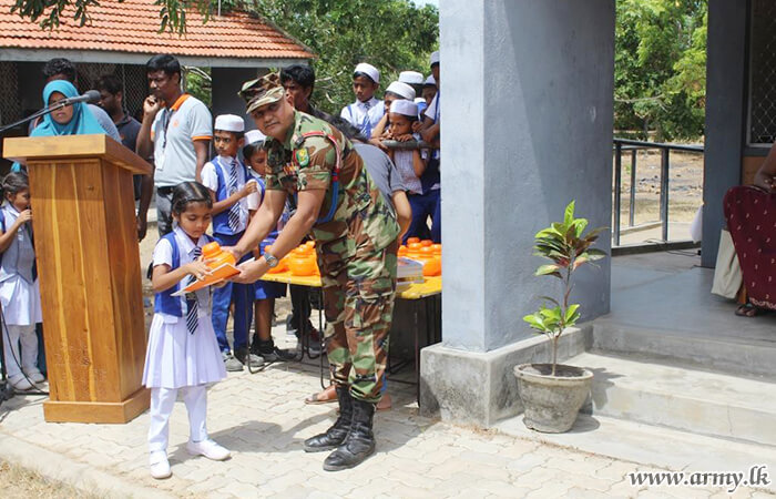 Troops of the 542 Infantry Brigade under the 54 Infantry Division with the objective of promoting the habit of money-saving among students organized a programme to offer bank accounts, tills and school aids among 140 school students in Musali Divisional Secretariat area on Thursday (7 Sept).
